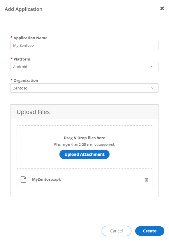 | Upload Files | Upload the .apk or .ipa file(s) |